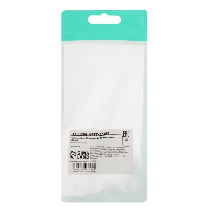 Наушники Luazon "Брилиант" W-02, вакуумные, чёрные