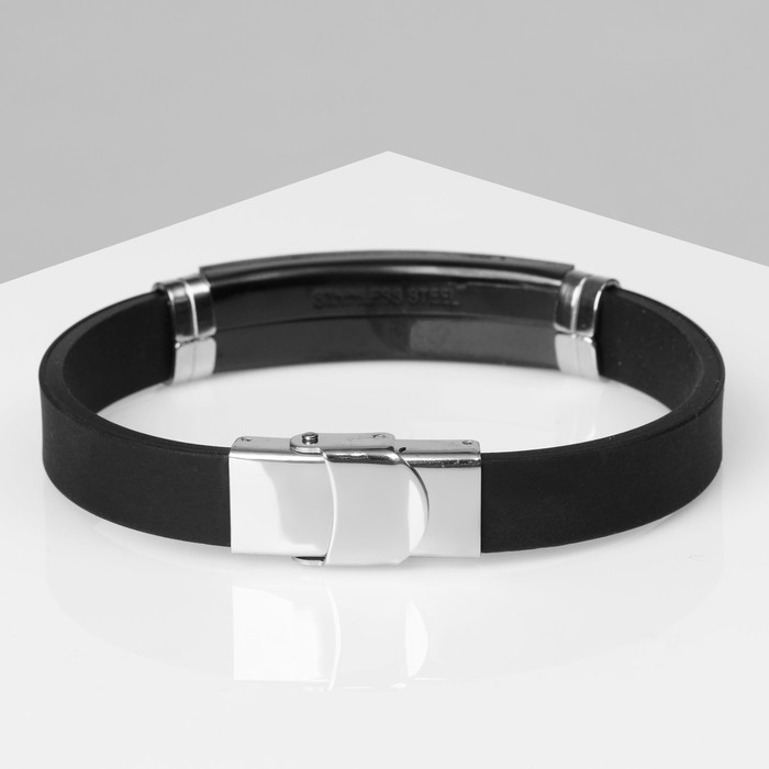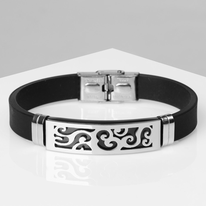 Браслет унисекс «Мощь» прямоугольник с узором, цвет чёрный с серебром, 22 см