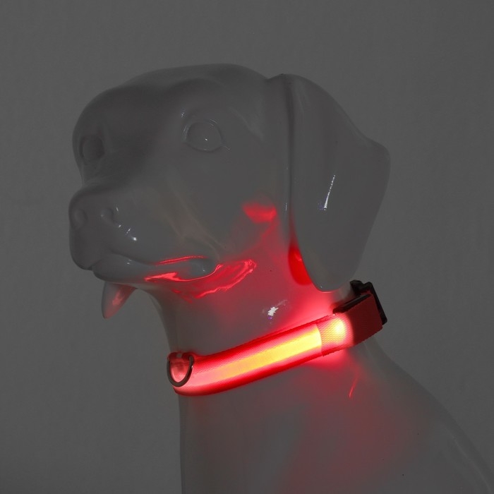 Ошейник с подсветкой размер XL, ОШ 52-60 х 2,5 см, 3 режима свечения красный