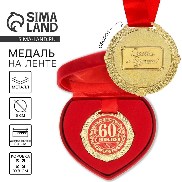 Медаль юбилейная в бархатной коробке «С Юбилеем 60 лет», d= 5 см