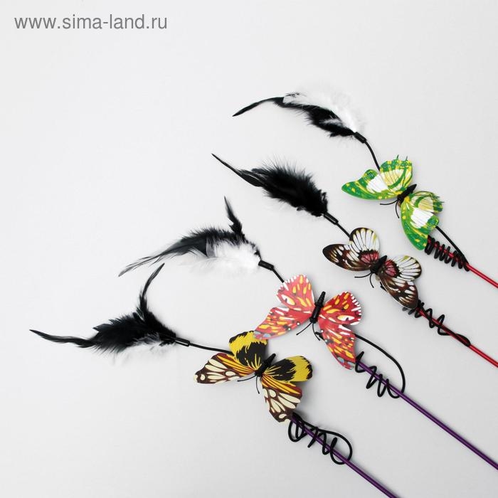 Дразнилка "Бабочка" с перьями, микс цветов