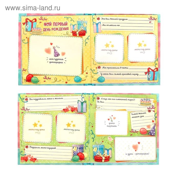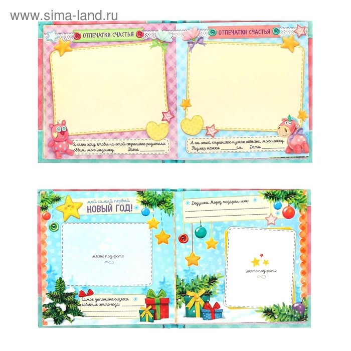Она состоит из 20 страниц с индивидуальным дизайном, которые позволят разместить первые фотографи и крохи и все его достижения за год: первые шаги, первый смех, первая спокойная ночь. В итоге у вас получится занимательная история самого важного в жизни периода. А с помощью ярких наклеек из комплекта книгу можно украсить!