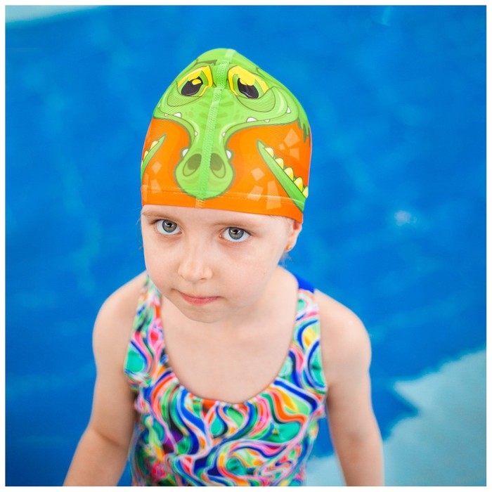 Шапочка для плавания детская ONLYTOP «Крокодильчик», тканевая, обхват 46-52 см