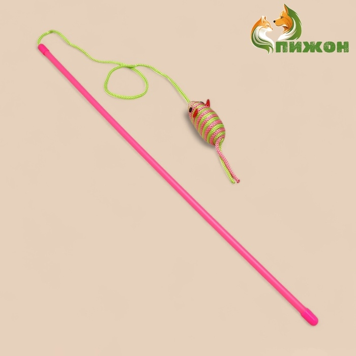 Дразнилка-удочка "Полосатая мышь", микс цветов