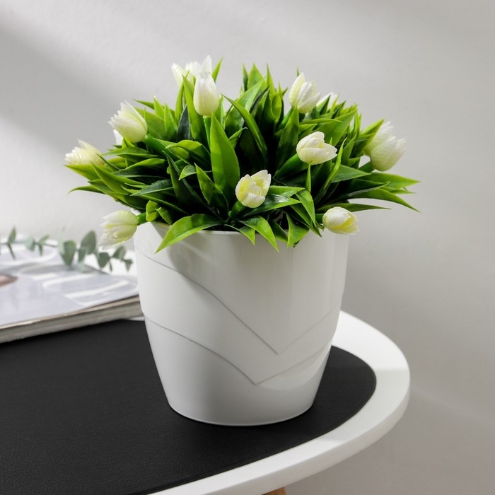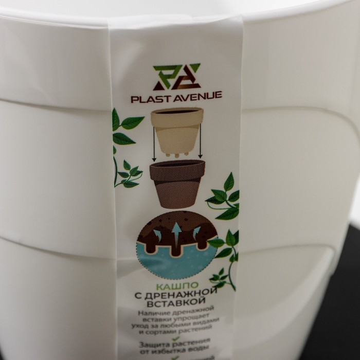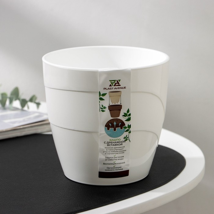 Кашпо для цветов со вставкой «Грация», 1,2 л, цвет белый