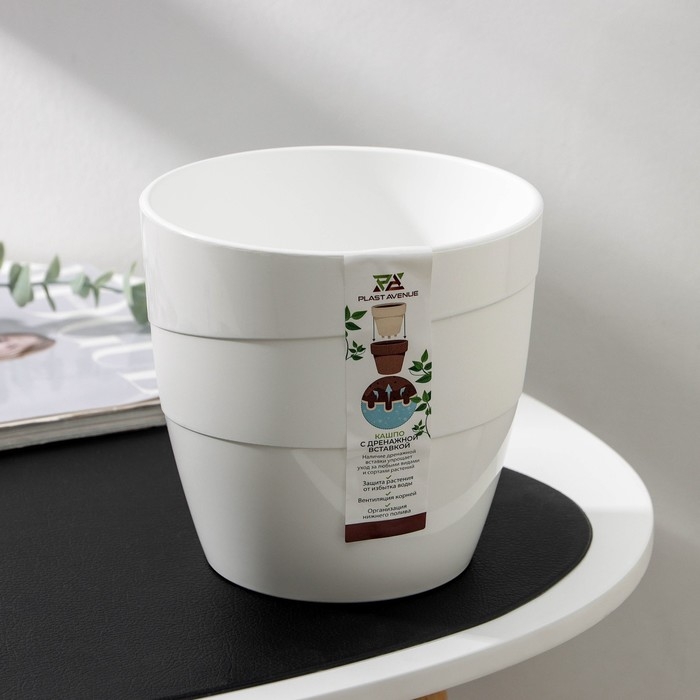 Кашпо для цветов со вставкой «Грация», 2 л, цвет белый