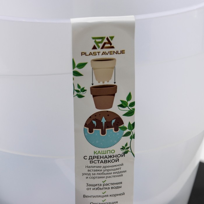 Кашпо для цветов со вставкой «Стив», 650 мл, d=11,5 см, h=10,5 см, цвет белый ротанг