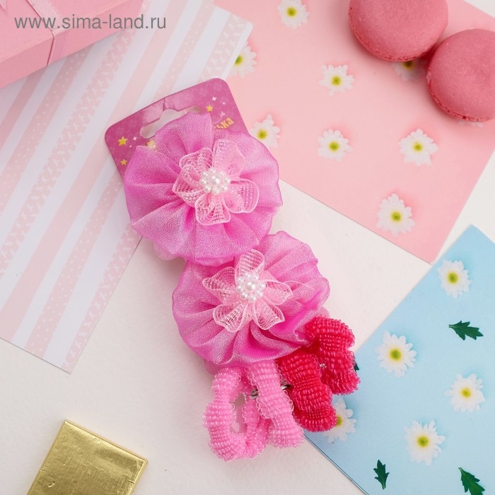 Резинка для волос "Кружево" (набор 6 шт) объёмный цветок, розовый