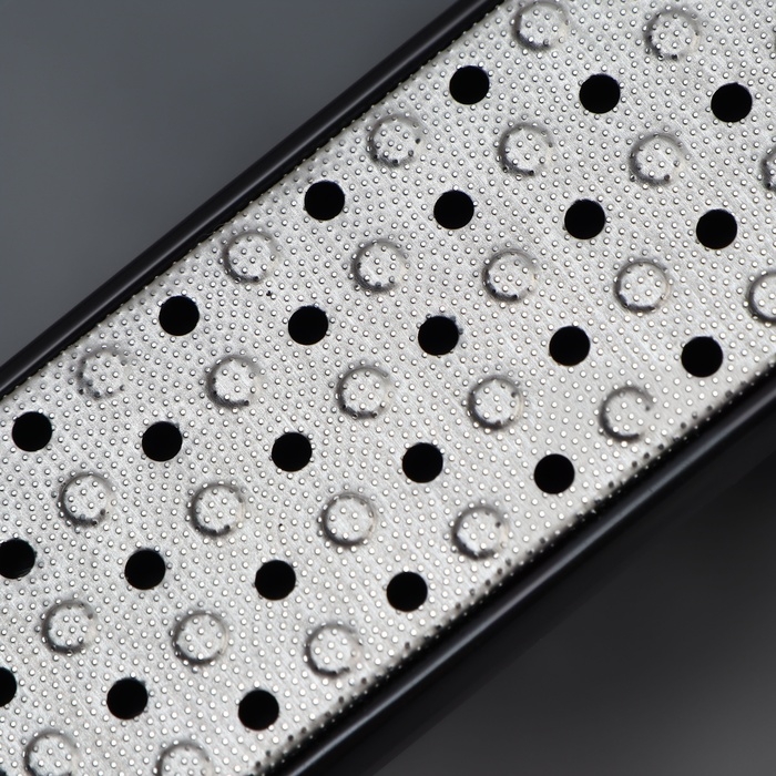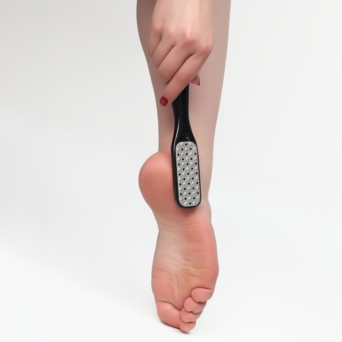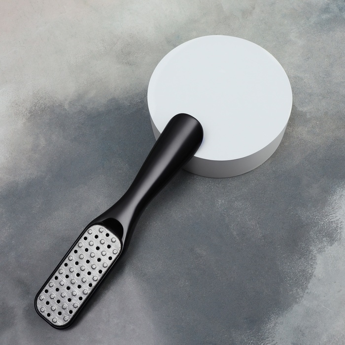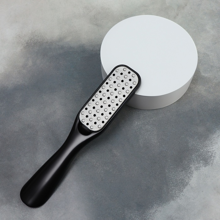 За счёт дизайна, тёркой могут пользоваться не только женщины, но и мужчины. На металлической поверхности с помощью лазера сделаны микрозубчики, которые за 10 пропилов снимут 1 мм огрубевшей кожи. Другая сторона тёрки отполирует уже подготовленный участок до идеального состояния. Проводить такую процедуру можно как на распаренной коже ног, так и на сухой. Комфортную эксплуатацию педикюрного инструмента обеспечит длинная ручка. Между подходами нужно промывать рабочую область в тёплой воде.