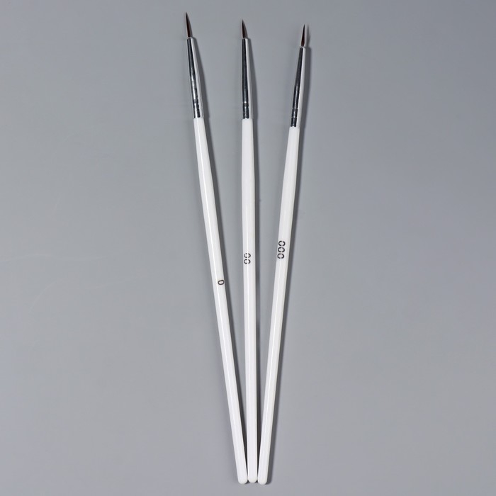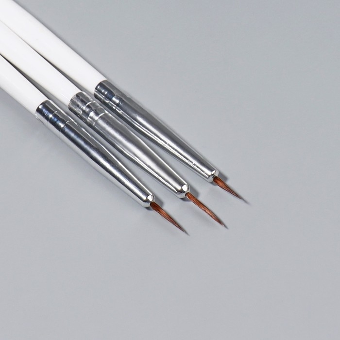 Набор кистей для дизайна ногтей, 3 шт, 18 см, цвет белый