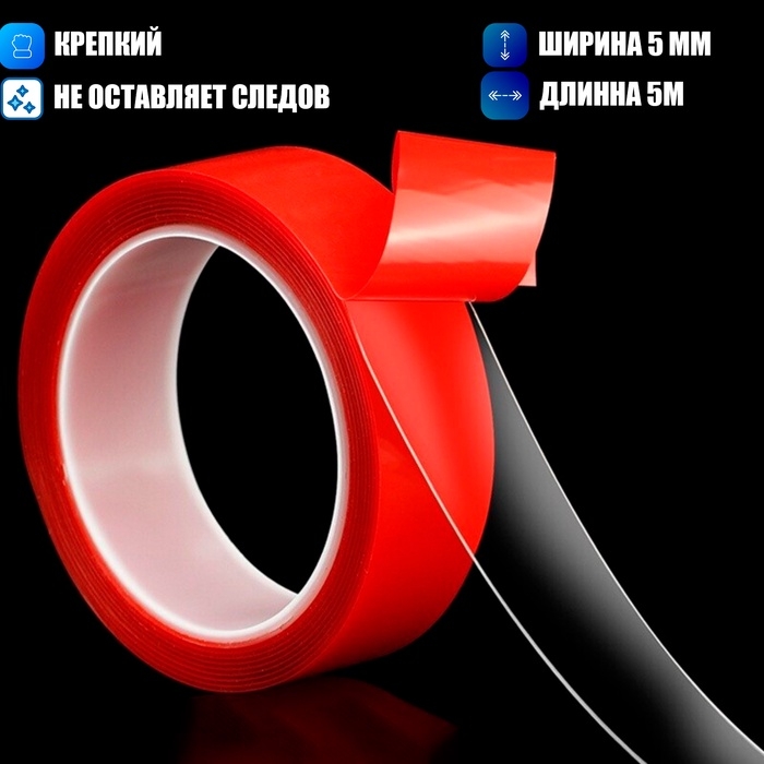 Клейкая лента TORSO, прозрачная, двусторонняя, акриловая, 8 мм х 5 м