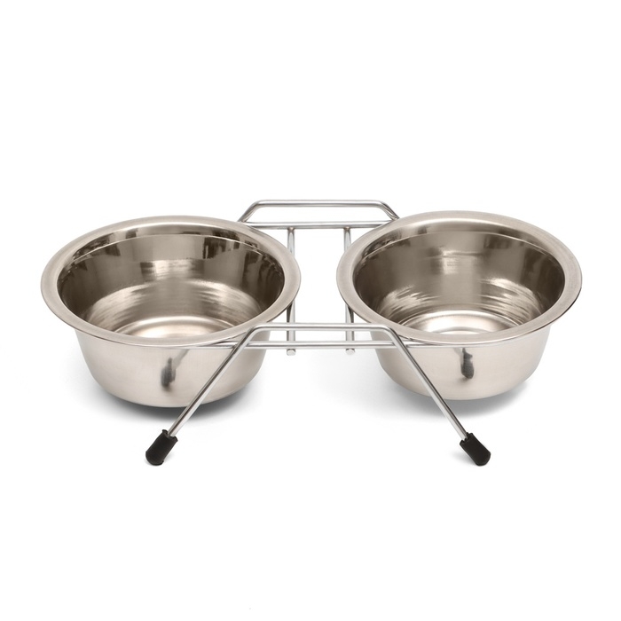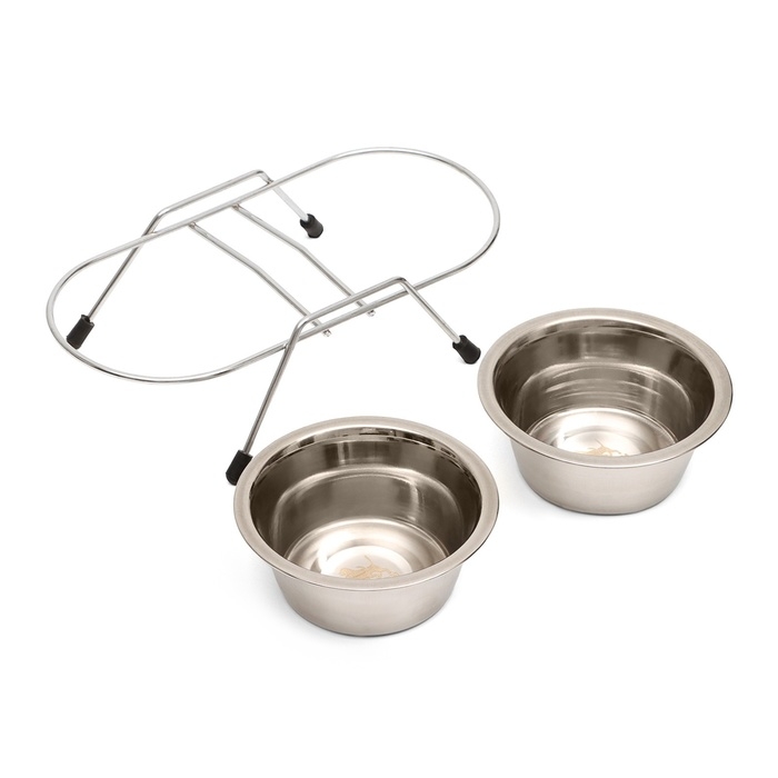 Подставка обеспечивает устойчивость мисок, а прорезиненные ножки предотвращают их смещение во время приема пищи.