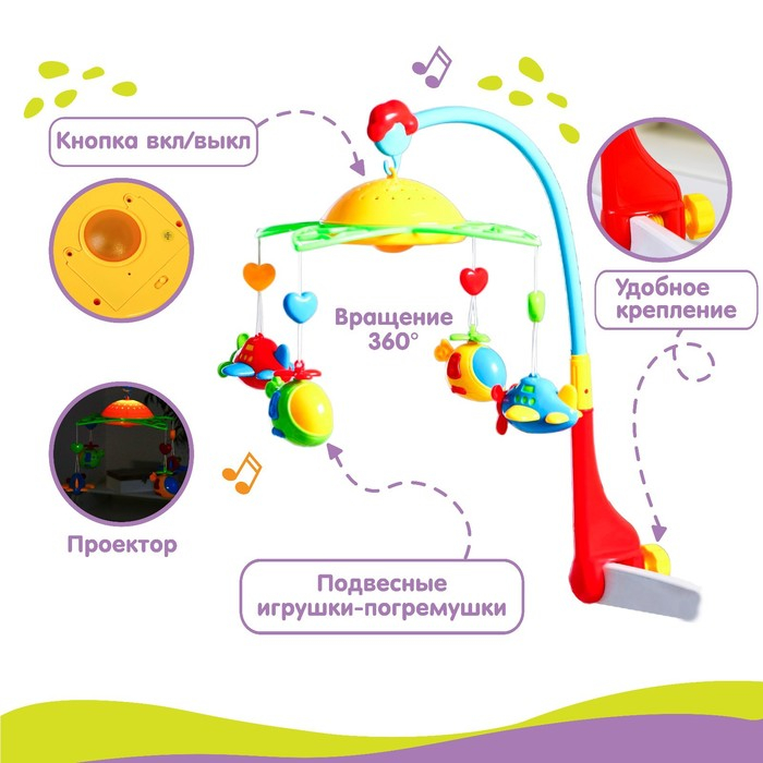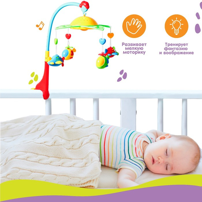 Мобиль музыкальный на кроватку «Самолеты, вертолеты», с ночником, Крошка Я