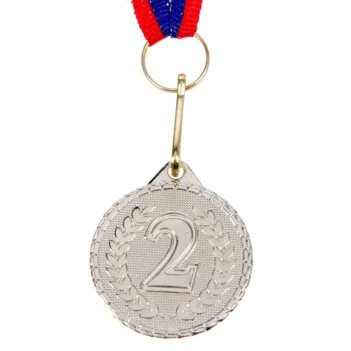 Медаль призовая 013, d= 5 см. 2 место, триколор. Цвет серебро. С лентой