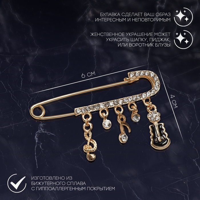 Данная булавка – настоящая находка для модниц, предпочитающих нетривиальные аксессуары. Брошь-булавка станет не только оригинальным дополнением вашего наряда, но и позволит без труда приколоть при необходимости палантин или шейный платок. Используйте её в качестве украшения шляпки, рубашки или галстука. Булавка «Классика» нотки, 5,5 см, цвет бело-чёрный в золоте внесёт особую нотку изящности в ваш образ.
