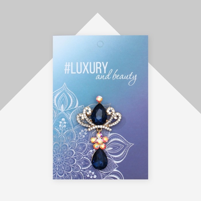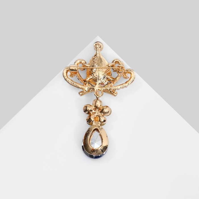 Брошь «Императрица» с подвеской, цвет сине-белый в золоте