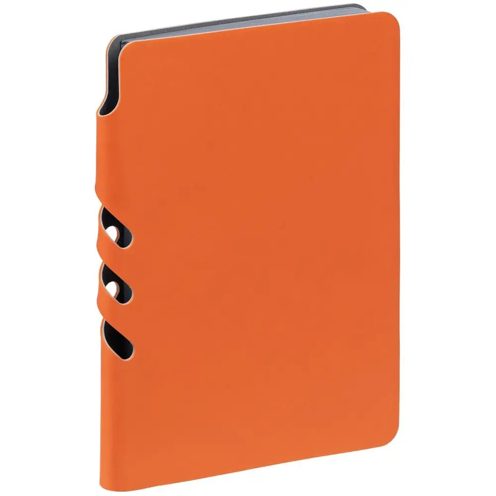 Ежедневник с гибкой обложкой выполнен из материала Soft Touch Pearl, оранжевый ОО и серого Latte (внутренняя часть обложки).