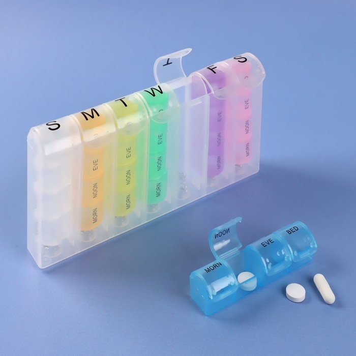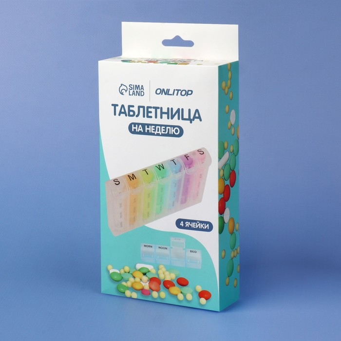 Таблетница - органайзер «Неделька», съёмные ячейки, утро/день/вечер/ночь, 17,5 × 10,7 × 2,5 см, 7 контейнеров по 4 секции, разноцветная