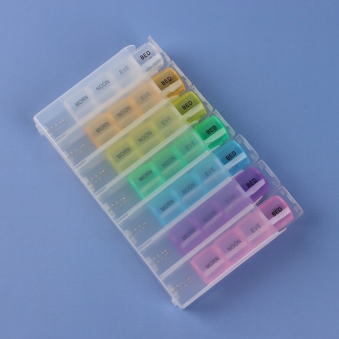 Таблетница - органайзер «Неделька», утро/день/вечер, 21,5 × 9 × 2 см, 21 секция, в коробке, разноцветная