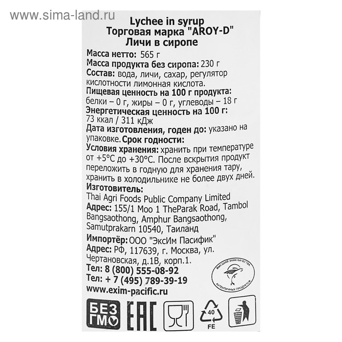 Личи в сиропе "AROY-D", 565 г