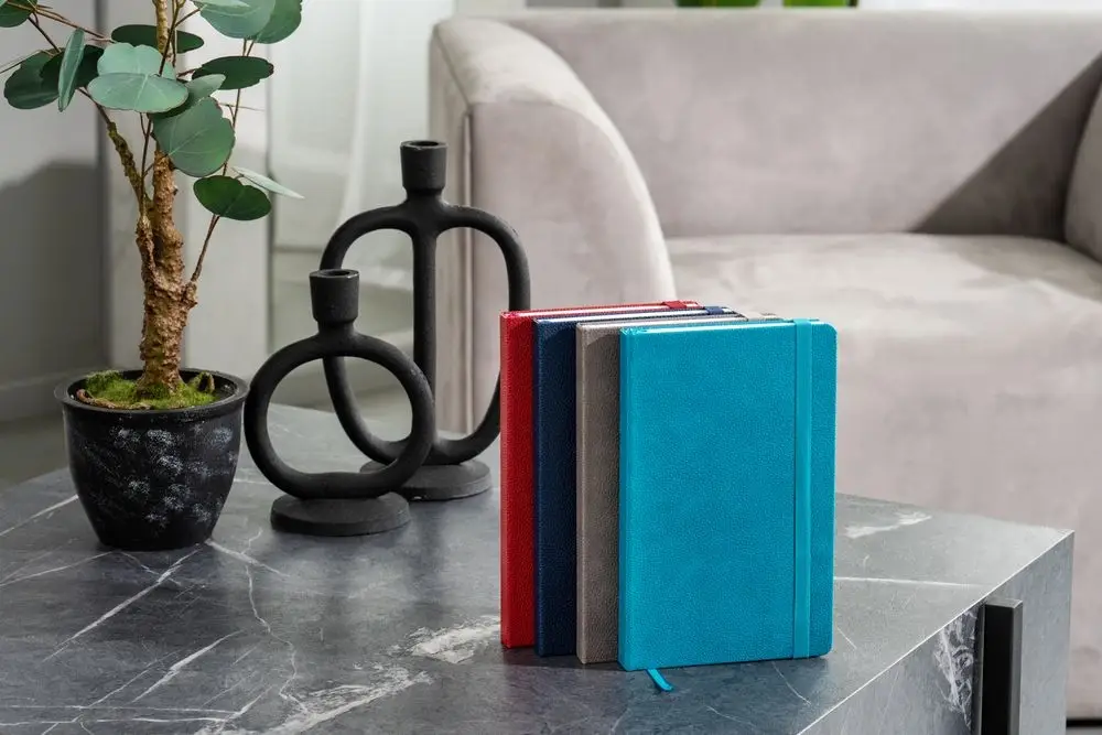Зауженный ежедневник в фактурной обложке — характерный рисунок прожилок и морщинок создает эффект натуральной кожи с грубым рисунком.