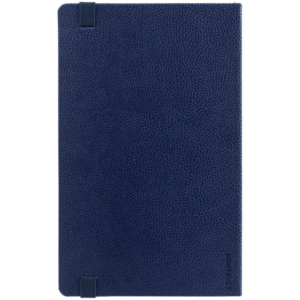 Ежедневник с твердой обложкой, выполнен из материала LaFite, темно-синий ХХ, дополнен резинкой и ляссе в цвет обложки.