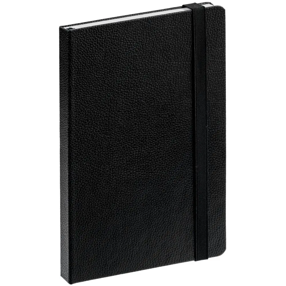Ежедневник с твердой обложкой, выполнен из материала LaFite, черный АА, дополнен резинкой и ляссе в цвет обложки.