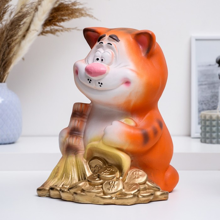 Копилка "Кот с метлой" рыжий, 24х20х28см