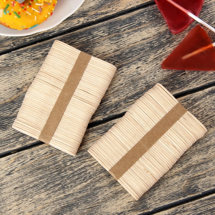 Набор деревянных палочек для мороженого Доляна, 7,5×1,1-1,5 см, 100 шт