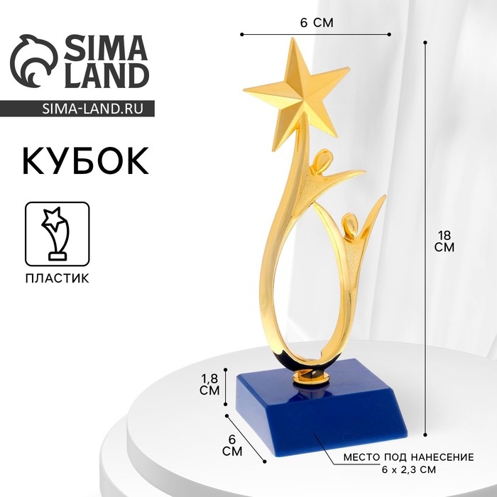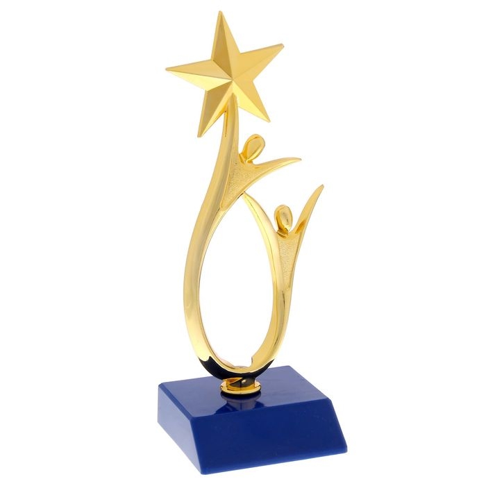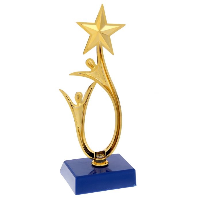 Наградная фигура «Человек со звездой», золото, подставка пластик синяя, 18 х 6 х 6 см.