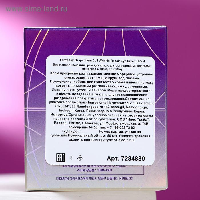 Восстанавливающий крем для области вокруг глаз FarmStay, с фито-стволовыми клетками винограда, 50 мл