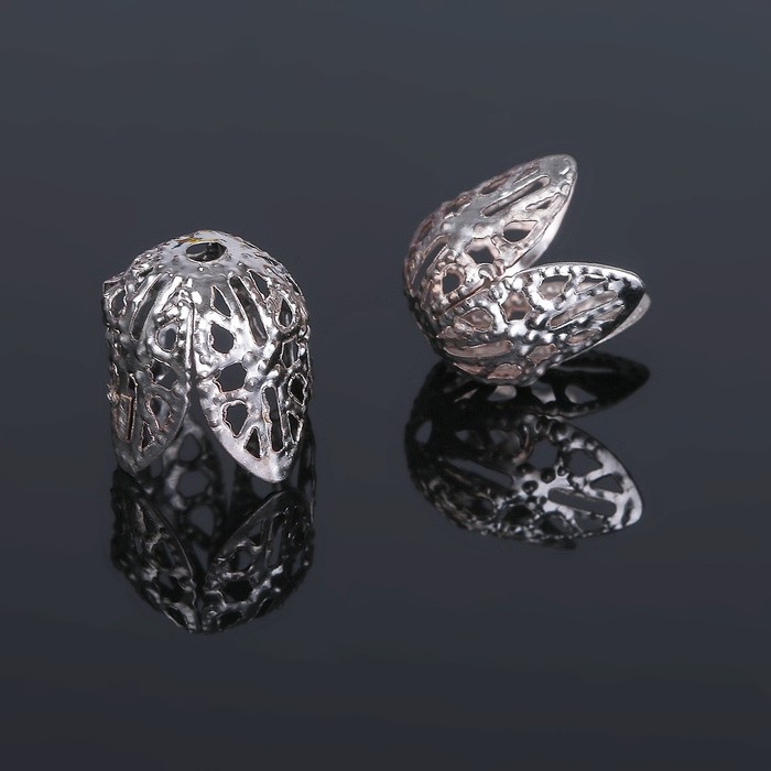 Шапочки для бусин (набор 20шт), СМ-051, 11×12 мм, цвет серебро