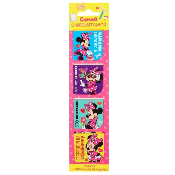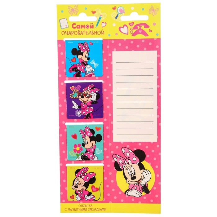 Закладки магнитные для книг на открытке "Самой очаровательной", Минни Маус