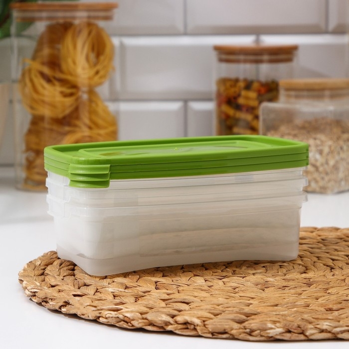 Набор контейнеров пищевых Доляна, 3 шт: 1 л, 18,5×12×7 см, прямоугольные, прозрачные, крышка зелёная