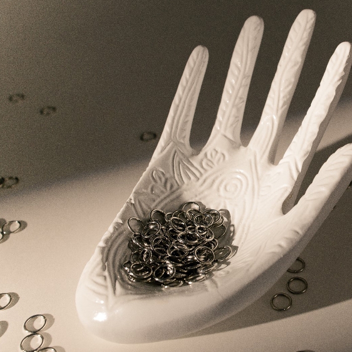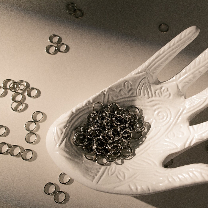 Колечки. Служат для соединения различных элементов украшения. Кольца бывают нескольких видов: Разъемные. Размыкаются и соединяются с помощью плоскогубцев. Цельные. Шва в таких колечкаха либо нет (напимер как в литых декоративных кольцах с узором), либо он запаян. Часто бывают крупного размера и используются как декоративно-соединительный элемент в украшении.