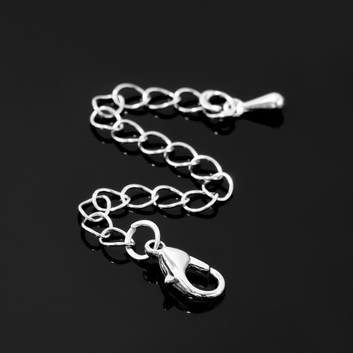 Замок-карабин СМ-951 (набор 5 шт.), 15×6мм, с удлинительной цепочкой 7,5см, цвет серебро