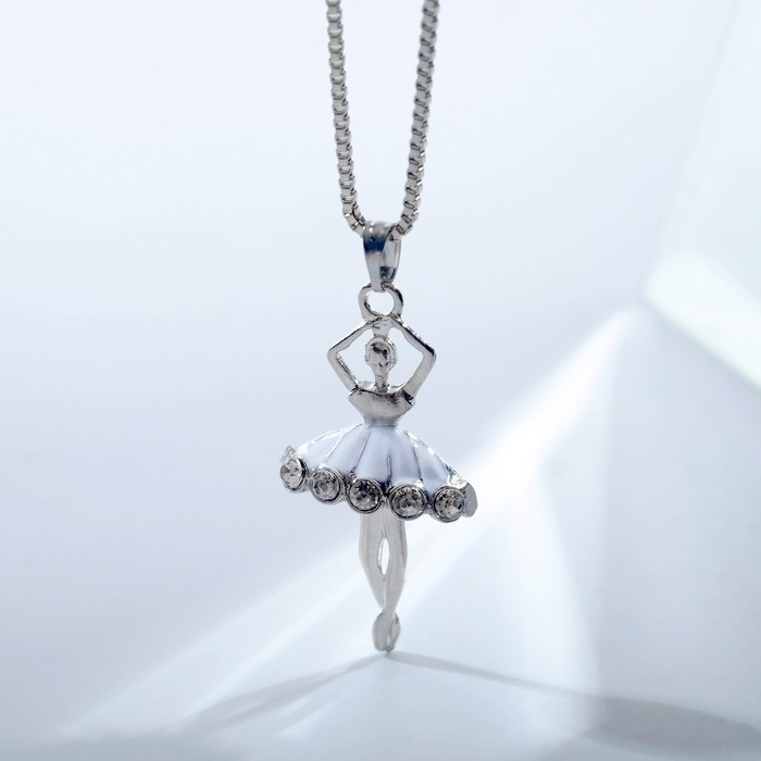 Кулон «Балерина» в юбке, цвет белый в серебре, 45 см