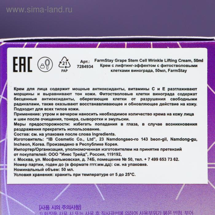 Лифтинг крем с фито-стволовыми клетками винограда FarmStay, 50 мл