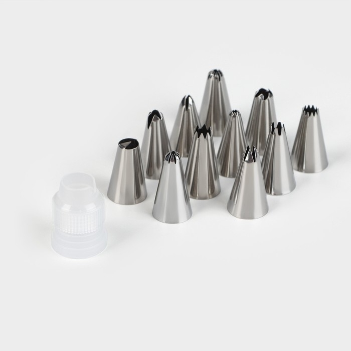 Набор насадок кондитерских Доляна, d=1,8 см, 12 шт, адаптер, насадки МИКС