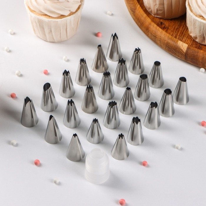 Набор насадок кондитерских Доляна, d=1,5 см, насадки 23 шт, адаптер 1 шт, МИКС