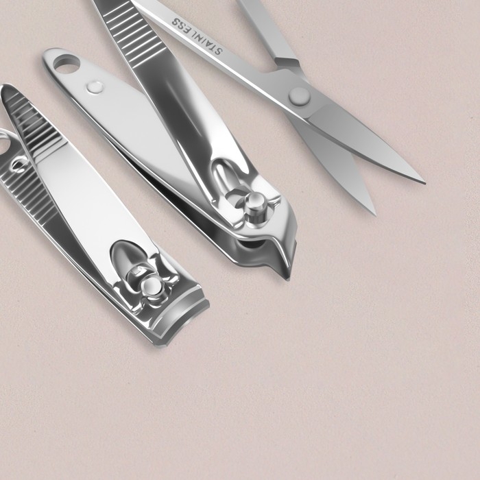 Набор маникюрный, 4 предмета, в футляре, цвет розовый