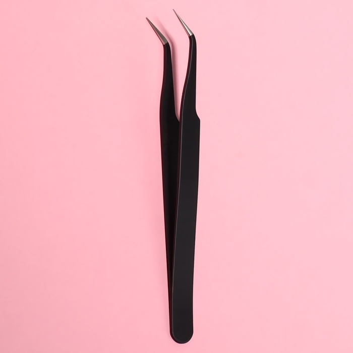 Пинцет для наращивания ресниц, загнутый, 12 см, цвет чёрный