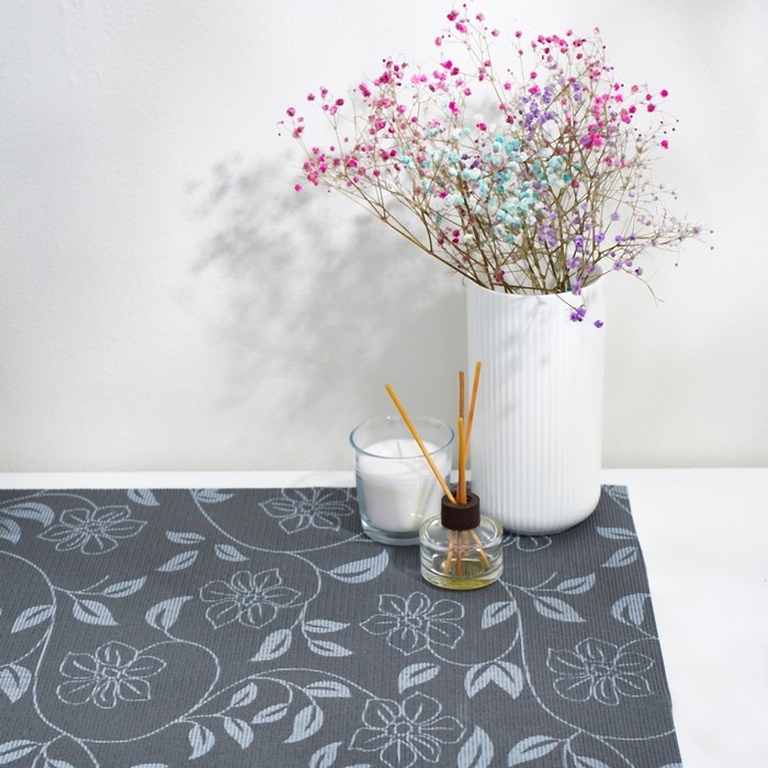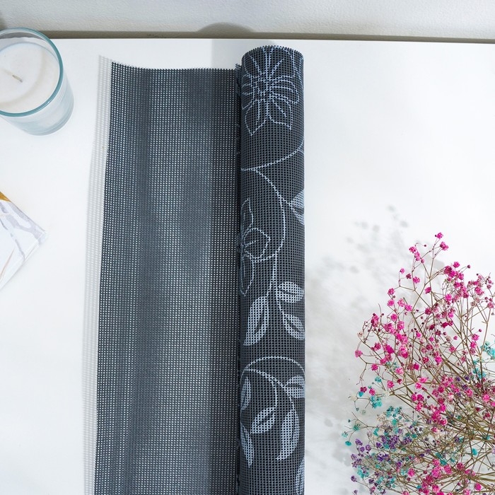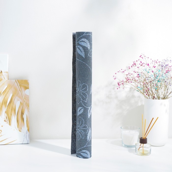 Коврик противоскользящий Доляна «Вьющиеся цветы», 45×100 см, цвет серый