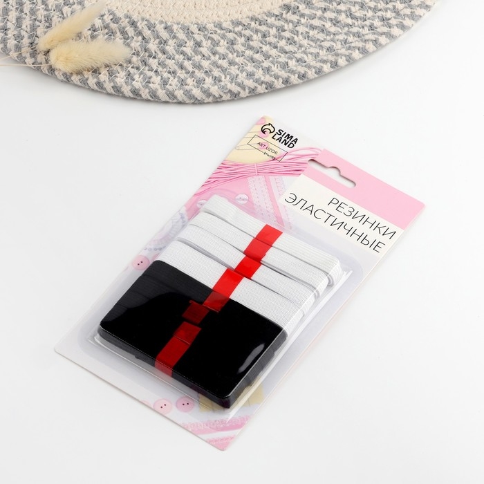 Резинки эластичные, 10/12/15 мм, 1 м, 8 шт, цвет чёрный/белый