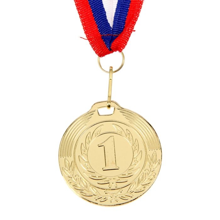 Медаль призовая 049, d= 5 см. 1 место. Цвет золото. С лентой