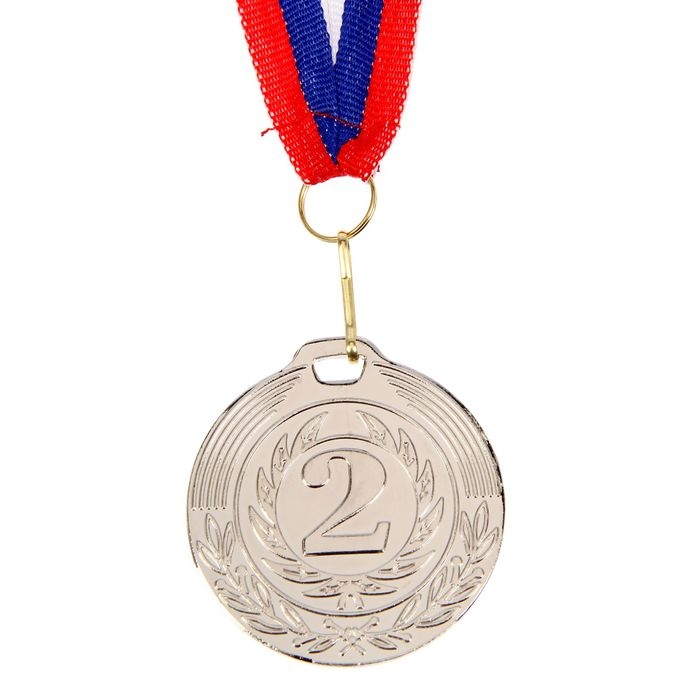 Медаль призовая 013, d= 5 см. 2 место, триколор. Цвет серебро. С лентой