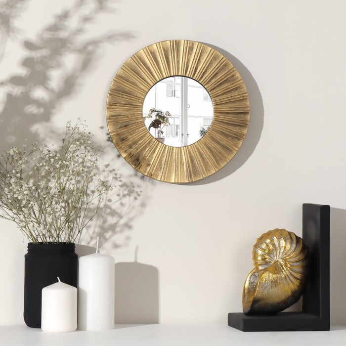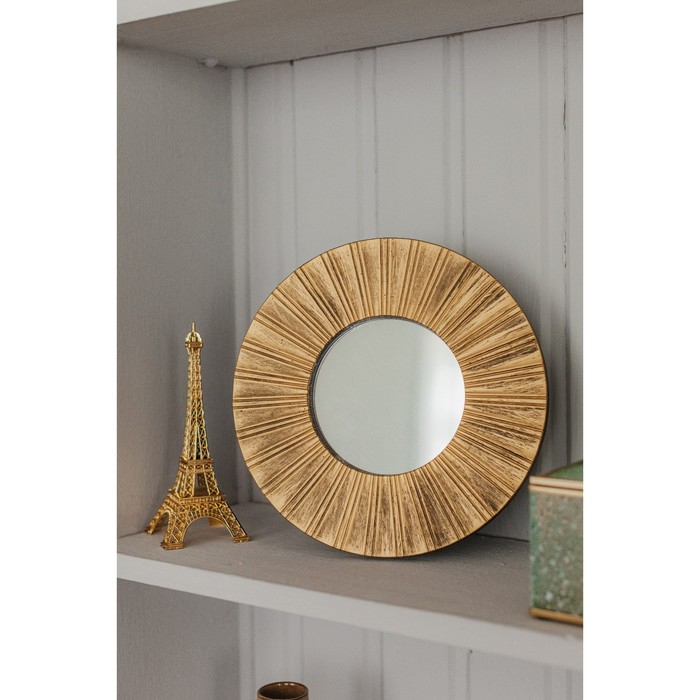 Зеркало настенное «Лучи», d зеркальной поверхности 12 см, цвет «состаренное золото»