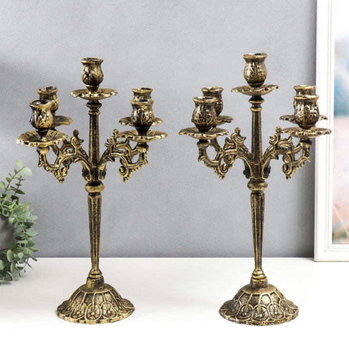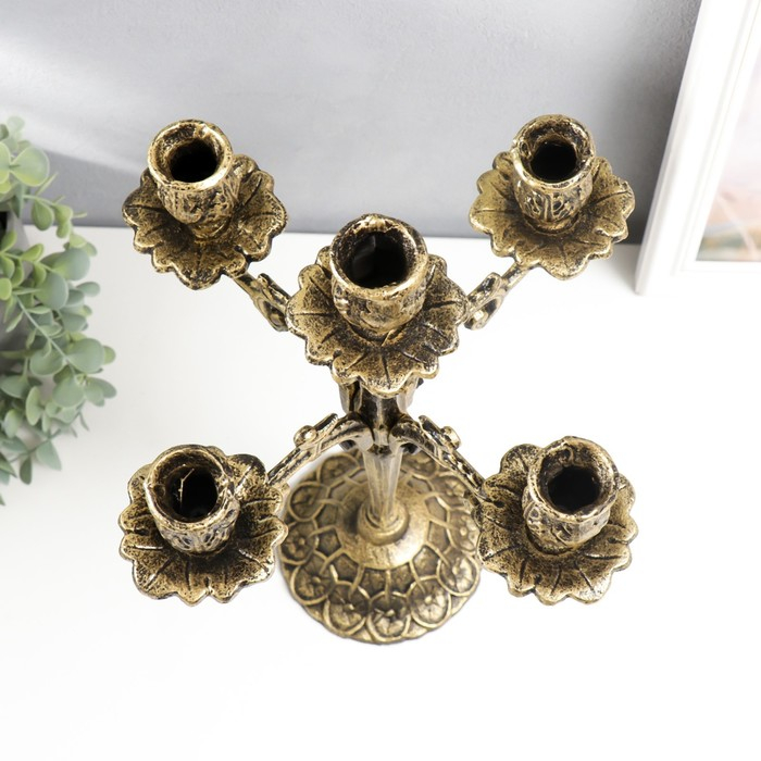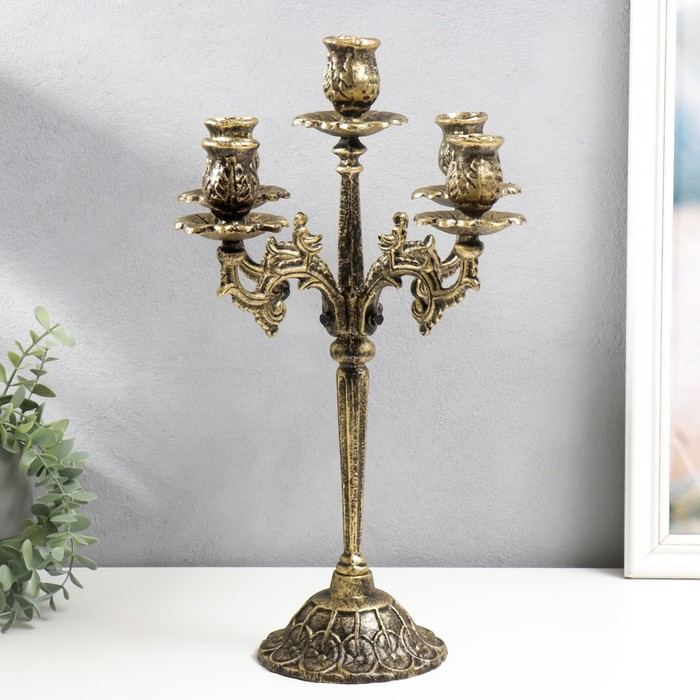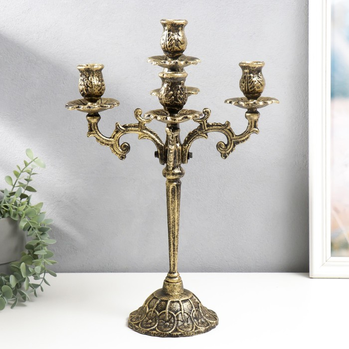 Подсвечник металл на 5 свечей "Королевский" золотая патина 43х29х29 см