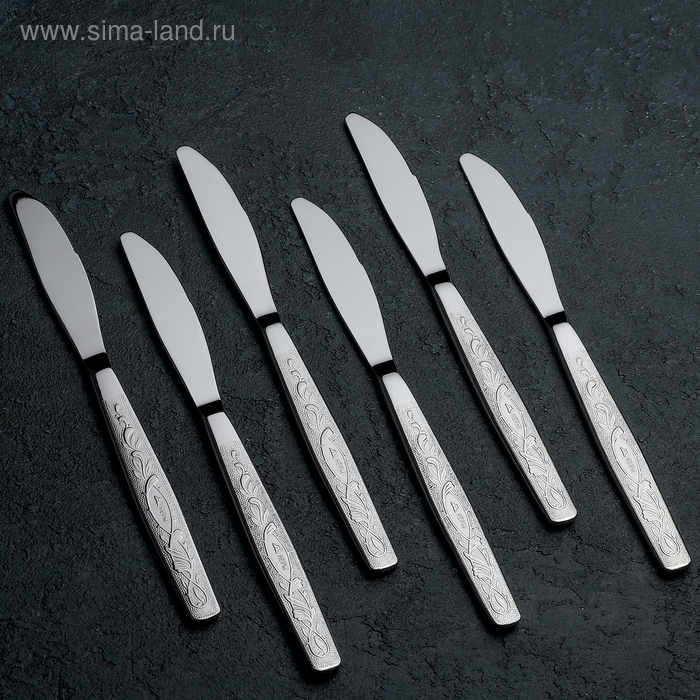 Ножи столовые из нержавеющей стали Доляна, длина 21,5 см, толщина 2 мм, 5 шт