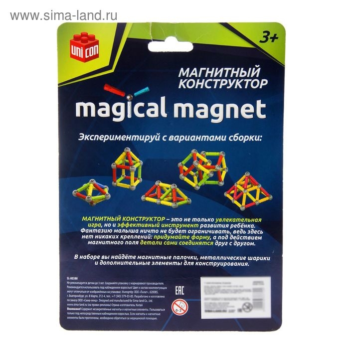 Конструктор магнитный, 56 деталей